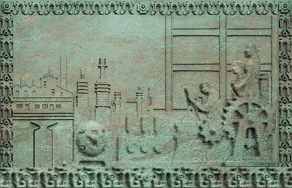 Once completed, a fantastic 12′ x 20′ cold cast bronze panel will be hung above the entrance with bands of ornamentation above and below. You can see an early model of the bronze panel in that very first photograph.
