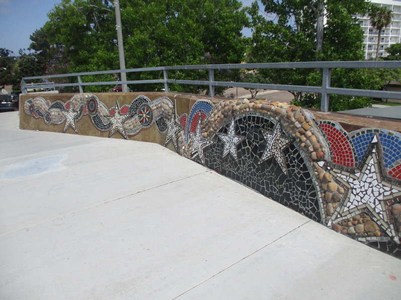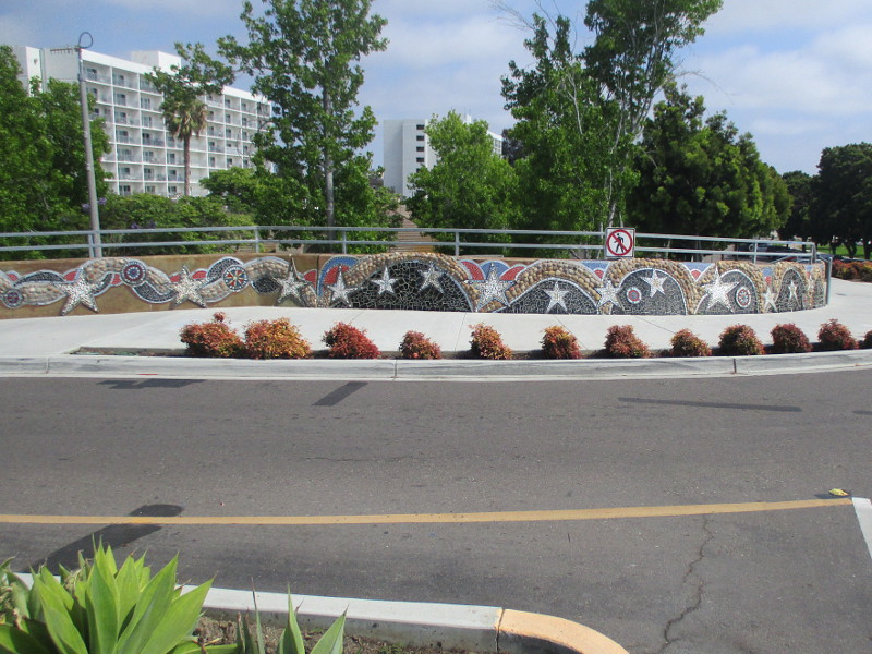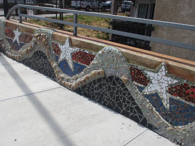 2 thoughts on “Stars on colorful mosaic walls in National City.”