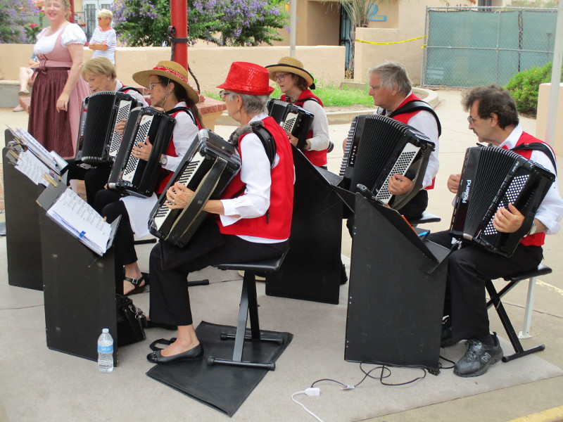 Four costumed dancers and six accordion players were entertaining the gathered audience with folk music and dance.