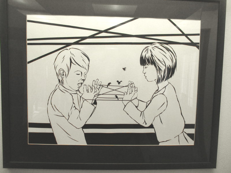 The artist is Chiho Harazaki. She utilizes adhesive tape that is cut into fine shapes to create artwork that is detailed and quite amazing. I photographed a few of her pieces so you can get an idea of what you’ll see when you pay a visit.