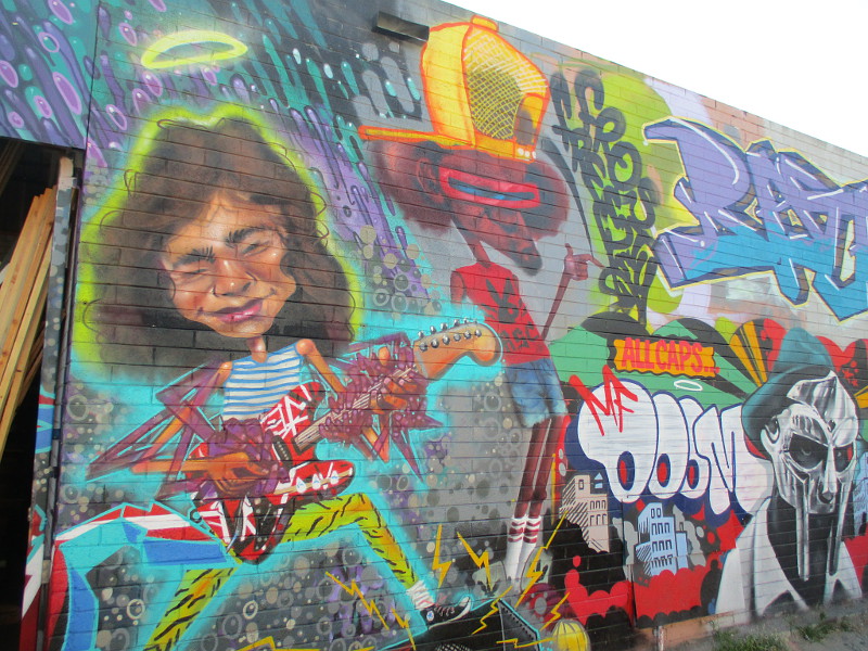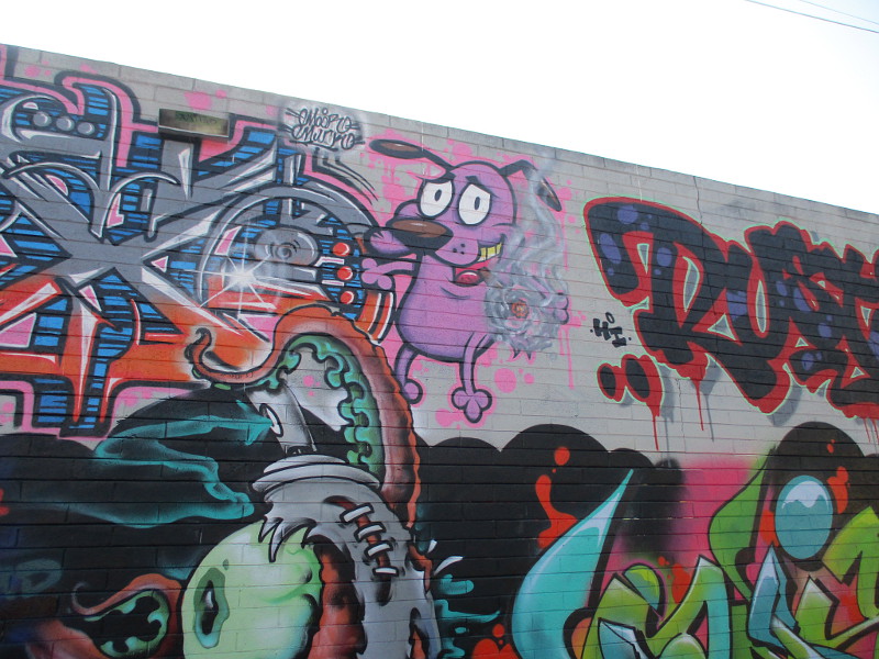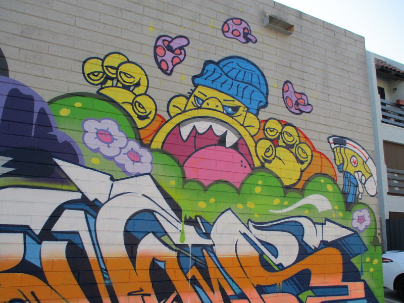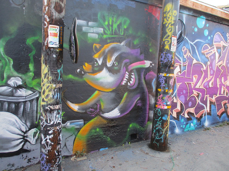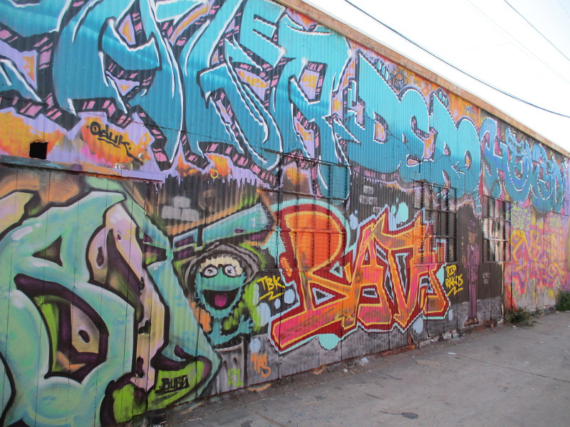 After taking those photos, I walked north along Flash Alley and aimed my camera at lots of amazing, super colorful spray paint art. It all was painted in the last year or so.