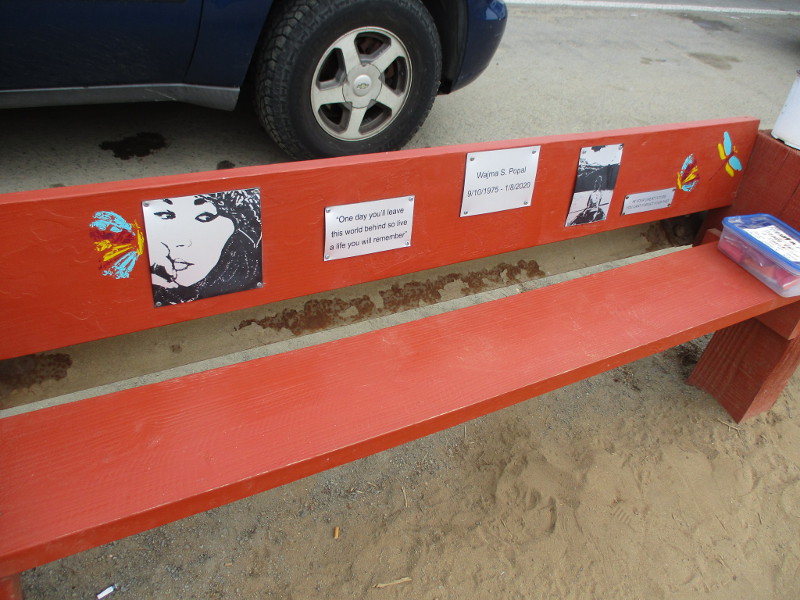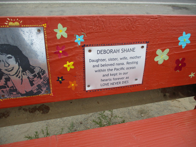 As I moved along the edge of the Pacific Ocean, looking out at the horizon from atop the high sandstone bluffs, the corner of my eye was caught by something colorful and bright. It was a bench beside the path overlooking the water.