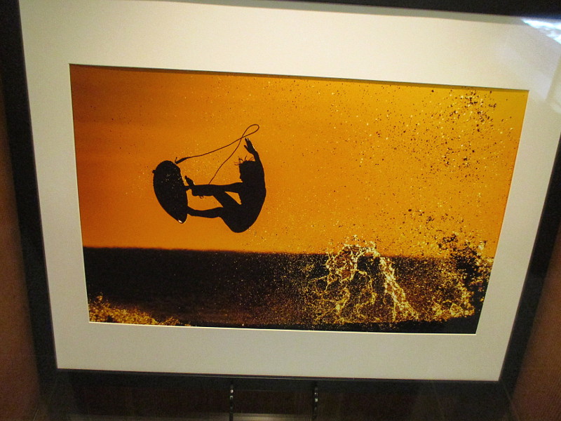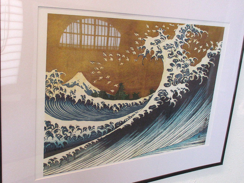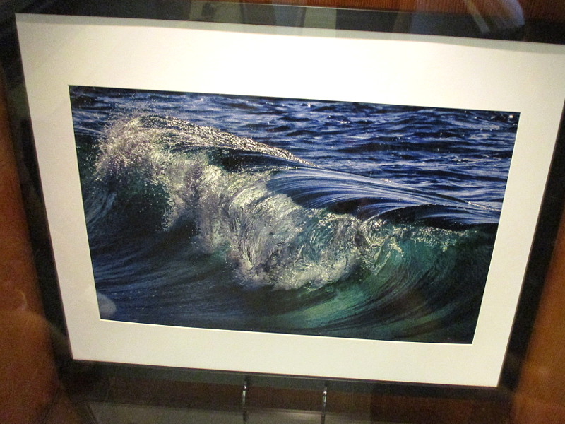 Today I noticed there’s new artwork on display in the Exhibit Hall. It concerns breaking ocean waves, and includes many images of surfers on surfboards. The art is so vivid and unique, it’s hard to describe.
