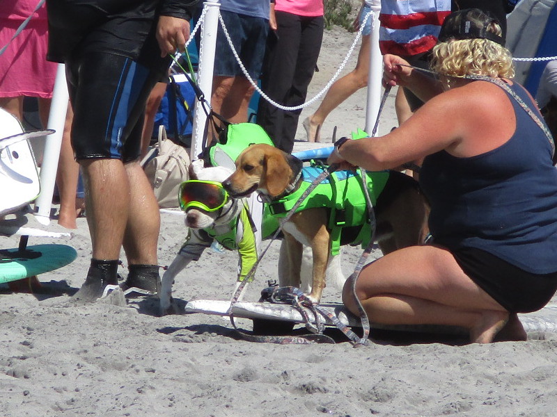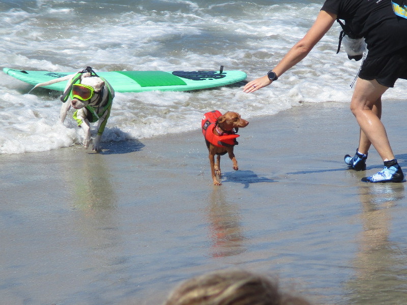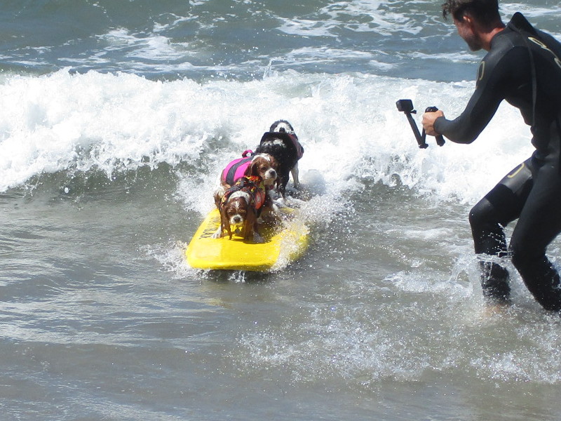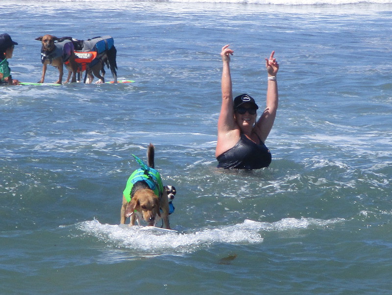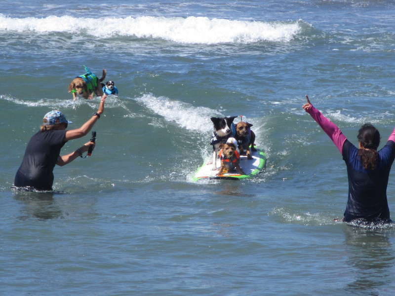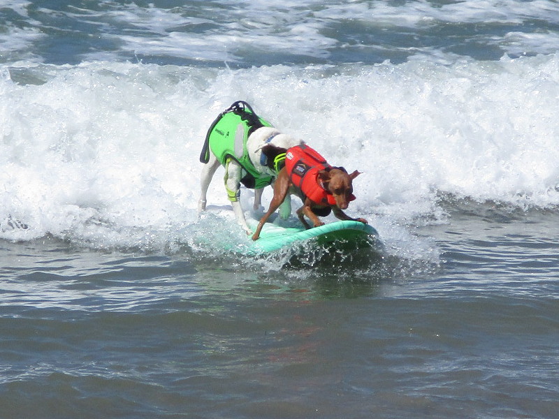The surfing I observed was freestyle. That meant two or three dogs per surfboard! Whether contestants faced forward or backward seemed unimportant!