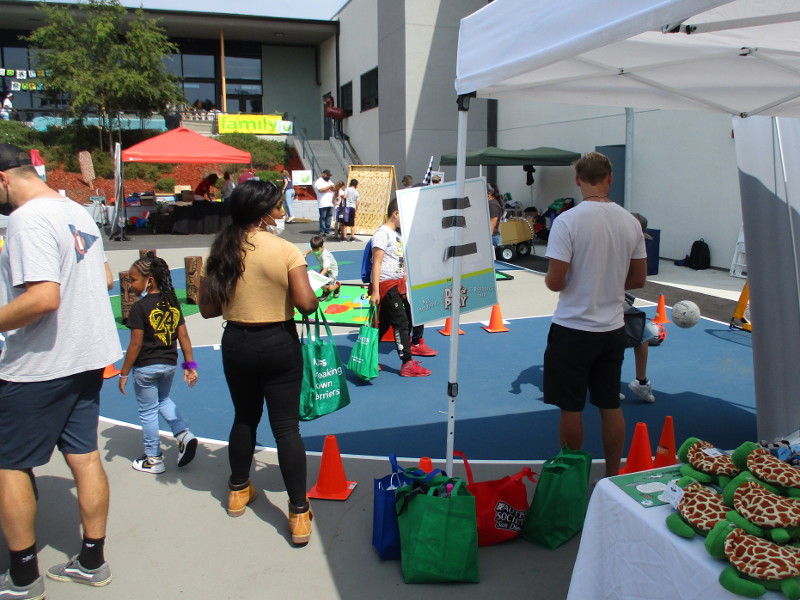 Kids were enjoying a big outdoor play area across Landis Street and a Day of Play at the new community center, and many other activities could be enjoyed freely by the public, including a softball clinic at the beautiful green ball field and skating demonstrations at the nearby skatepark. The Fern Street Circus would also perform!
