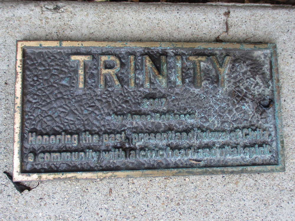 A plaque at its base reads: Honoring the past, present and future of Civita, a community with a civic heart and vital spirit.
