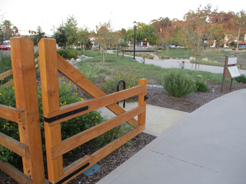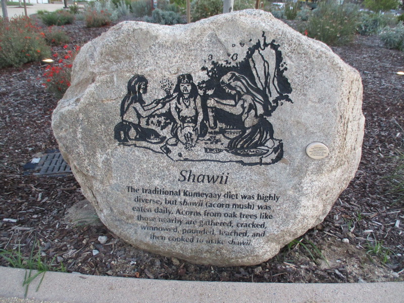 Pathways wind through native vegetation, beautiful public artwork, and interpretive displays on stones that describe the history and culture of the Kumeyaay, who lived here for many thousands of years before the arrival of Europeans. A Kumeyaay village called Kosa’aay existed where Old Town is now, near the mouth of the San Diego River.