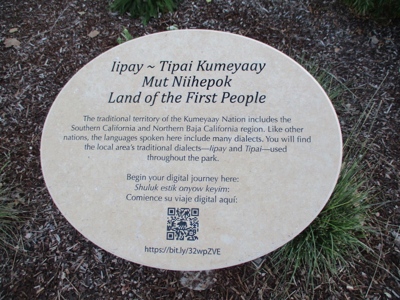 The beautiful new outdoor area, situated at the north end of the State Park, near the intersection of Taylor Street and Juan Street where an old Caltrans building used to stand, is called Land of the First People. It honors our region’s Native American Kumeyaay.