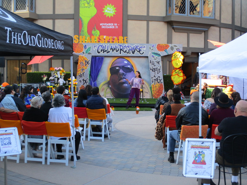 What I observed was a crazy fun mixture of Shakespeare’s plays, modern romance, hip hop culture, dancing in the audience, laughter, bubbles, a Día de los Muertos altar, comedy about Halloween candy, and loads more impromptu cleverness and playful creativity!