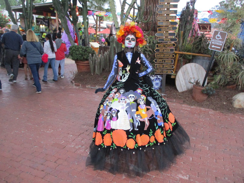 Many are still cautious because of the COVID-19 pandemic, so there wasn’t the usual crowd and activities. But I did find music and colorful Catrinas at Fiesta de Reyes, and sugar skull face painting at a few spots in the State Park and along San Diego Avenue. I also came across a couple of Día de los Muertos altars.