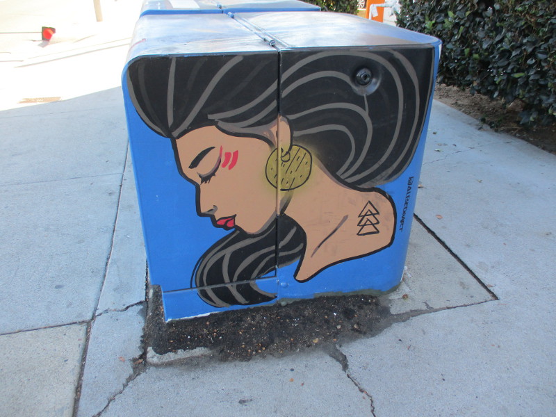 The first happy face, in the above photograph, was discovered near the corner of 8th Street and National City Boulevard. That box used to feature some fun Star Wars artwork. You can see those old photos here!
