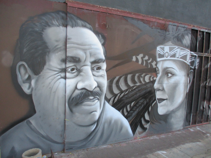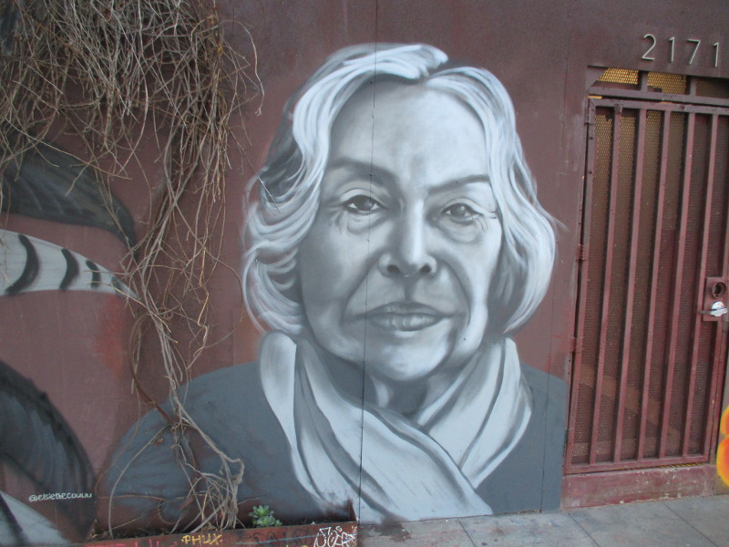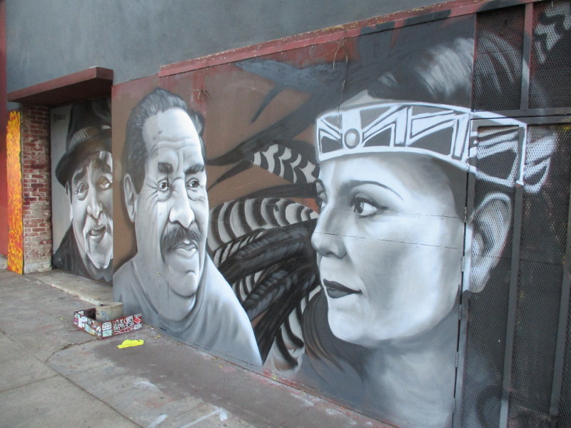 The last time I walked along Logan Avenue, during the afternoon of the Las Posadas event, I came across an amazing mural a bit northwest of Sampson Street. It depicts four legendary Barrio Logan artists: Chunky Sanchez, Victor Ochoa, Carmen Kahlo and Yolanda Lopez.