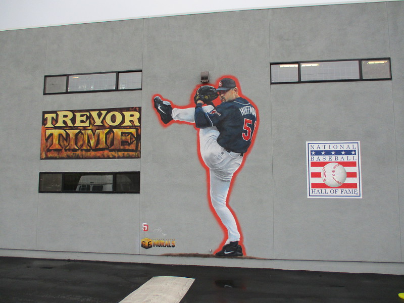 Have you seen the cool Trevor Hoffman mural painted on the rear wall of Hansen Surfboards in Encinitas?