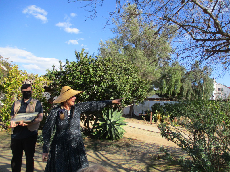 Today I sat on a bench in the beautiful Casa de Estudillo garden and listened to a California State Parks employee talk about the remarkable biodiversity in San Diego, which is partly attributed to the importation of plants and trees by Spanish missionaries, settlers, traders, and early civic visionaries like Kate Sessions.