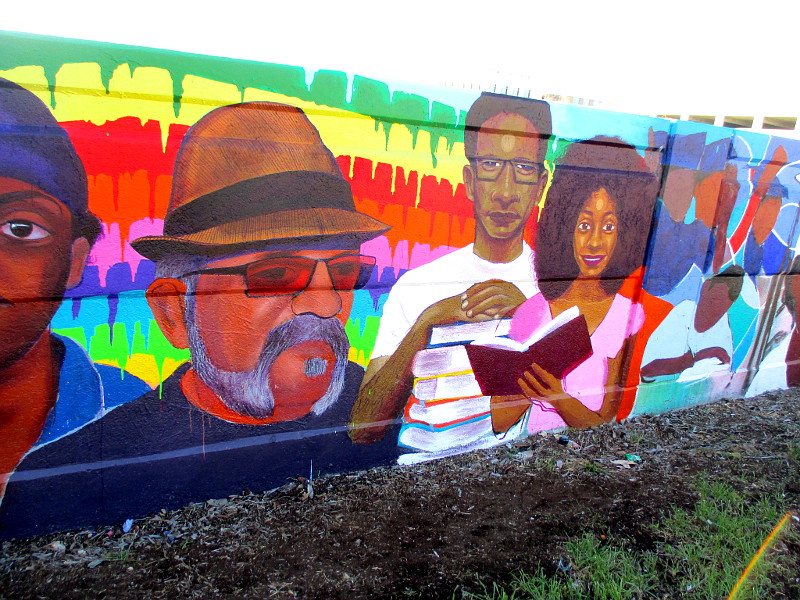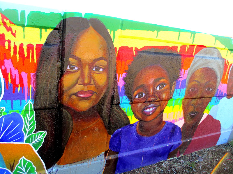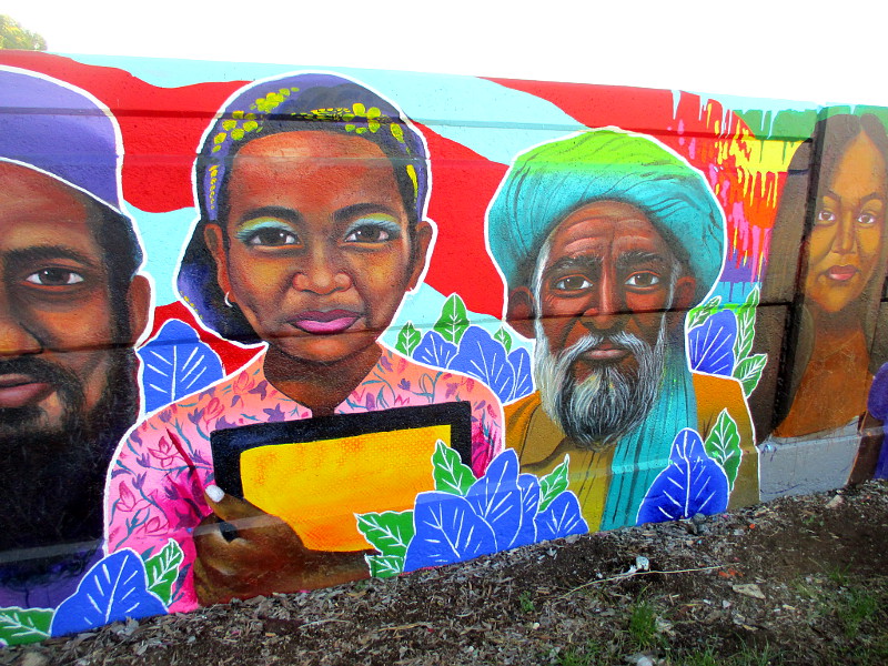 City Heights is a community in east San Diego that is home to many immigrants and refugees from all around the world. That diversity is reflected in this colorful, positive artwork!