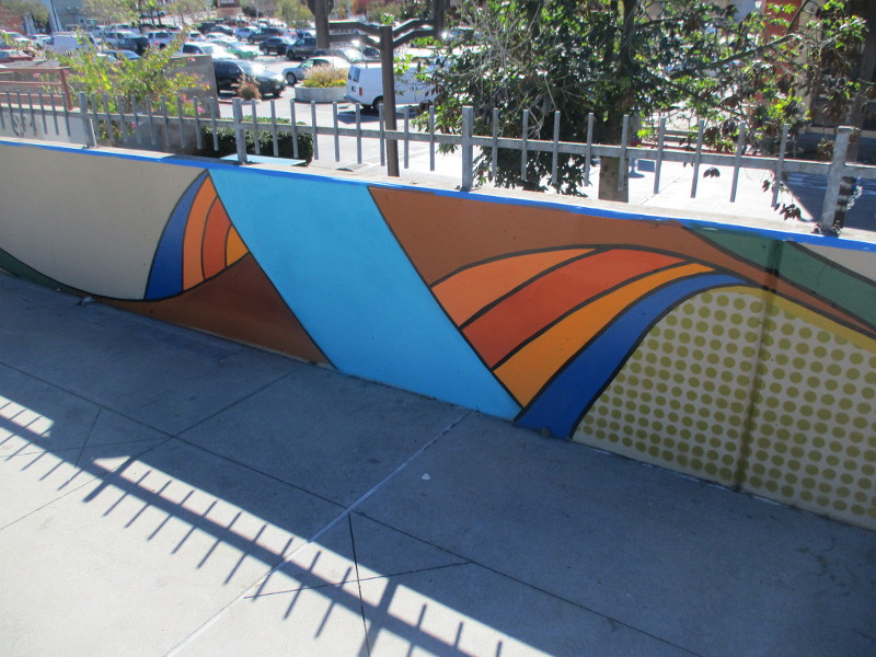 Look what I discovered during my travels today! New public artwork is now being painted on two low walls by the trolley station platform at the Euclid Transit Center!
