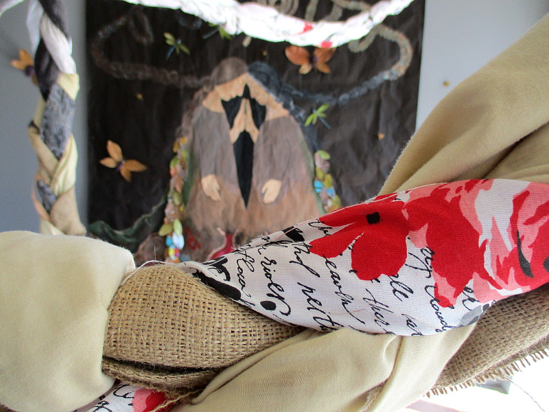 Postcards that visitors can write a message of kindness or encouragement upon. They will be sent anonymously when the exhibition ends.Breakfast, 2021, Lourdes Araiza. Photograph mounted on wood. Image of Mom eating breakfast, whose loving smile full of gratitude was a blessing.Amor a lo Natural, 2020, Paola Segura. Oil on canvas. Pride and power, struggle and frustration are often depicted through the artist’s pieces.The Graduate, 2022, Monica Nunez Aragon. Acrylic.Tu Sola Alondra, 2022, Alondra Zamora. Acrylic on canvas. The artist’s love letter to her culture as a Mexicana.Prayer, 2022, Betty Bangs. Acrylic on canvas.Healing, 2020, Veronica Aranda. Mixed media on canvas. An image that came to the artist of a world healing without pollution.Re-Member Her site specific installation by Collectivo XoQUE. Imagery of Aztec goddess Coyolxauhqui explores women living on the border, and seeks to “create intimacy in the attempt to pick up the fragments of our dismembered womanhood and reconstitute ourselves in harmony with nature, body and soul, and the mind and spirit.”Braiding a Message of Love.