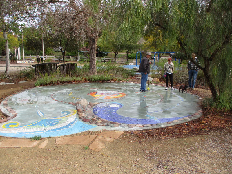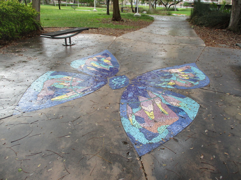 A mosaic butterfly at one entrance symbolizes transformation and renewal. It’s placement on the pathway was intentional. The butterfly along with other park mosaics (including a gorgeous labyrinth) were designed by renowned artist James Hubbell, along with his award-winning architect son, Drew.