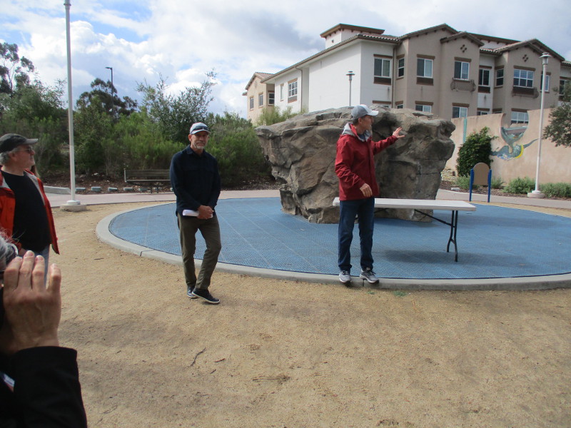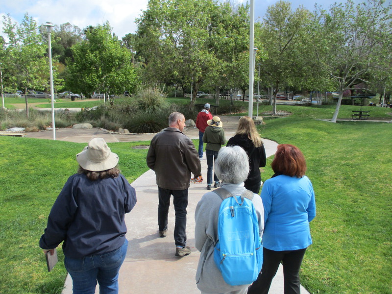 Our tour group gathered by an amazing mosaic labyrinth created by renowned local artist James Hubbell. His architect son, Drew, was on hand to tell us about the Hubbell created public art around the park. Glen of Schmidt Design Group, the landscape architect who designed the park some 20 years ago, was also there.