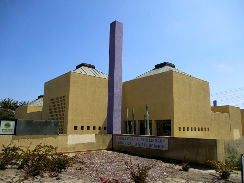 The South Chula Vista Branch Library was built under the direction of renowned Mexican architect Ricardo Legorretta in 1995. Learn more about the architect and his other work here.