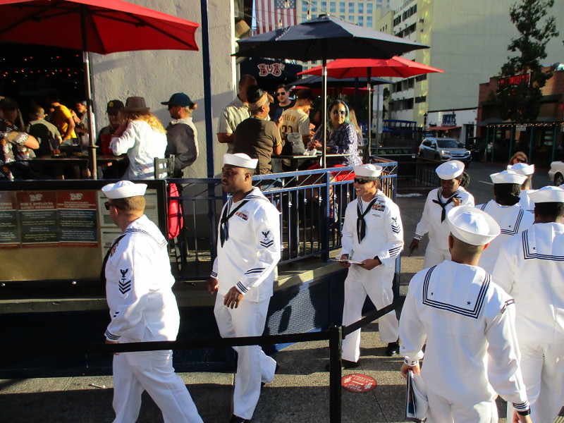 I walked through the Gaslamp Quarter and East Village in the early morning, and again after work while the game was already underway.