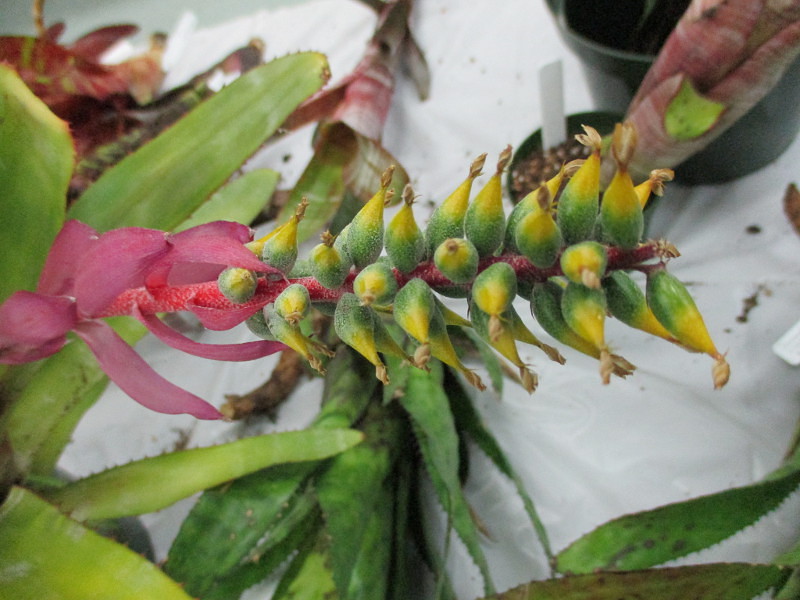 A friendly gentleman answered all sorts of odd questions that popped into my mind concerning bromeliads. They’re distinguished from other similar-appearing plant types primarily by their flowers. Many bromeliads are found naturally at higher elevations and are pollinated by hummingbirds, that tolerate colder temperatures than bees. And . . . and . . . I already forgot half of what I was told!