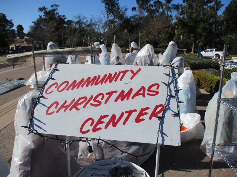 San Diego Community Christmas Center volunteers were at work in the Spreckels Organ Pavilion erecting their annual Nativity Display and Gingerbread House!