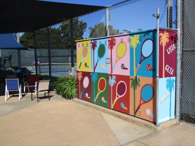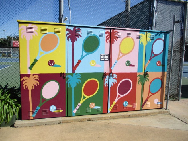Check out these colorfully painted lockers at the Balboa Tennis Club!