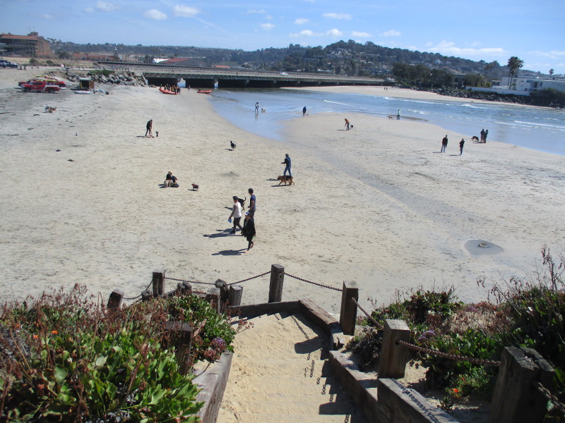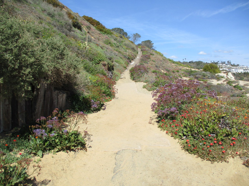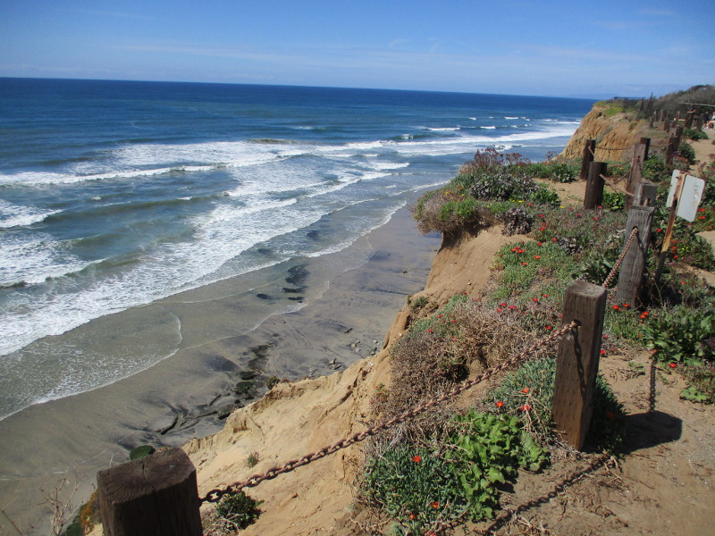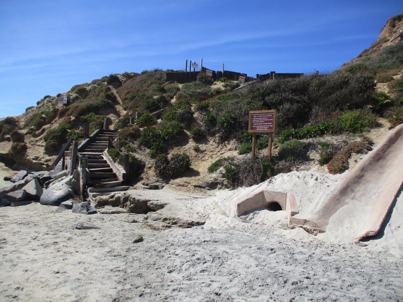 Those who visit Dog Beach (also known as North Beach) in Del Mar might wonder about some wooden stairs. They climb up the sandstone bluffs to the north. I ascended them the other day and discovered a hidden paradise!