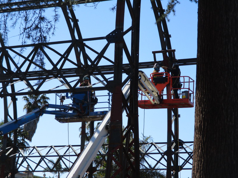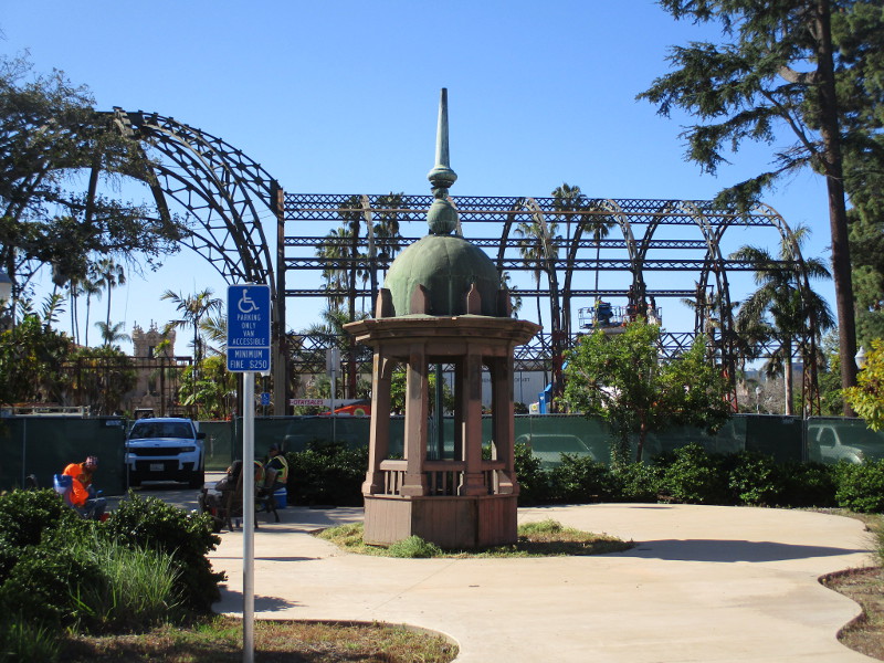 I asked why the steel skeleton couldn’t be entirely replaced. The answer, of course, is that the Botanical Building has special historical status. It was built in 1915 for the Panama-California Exposition. It was one of the few exposition structures intended to be permanent.