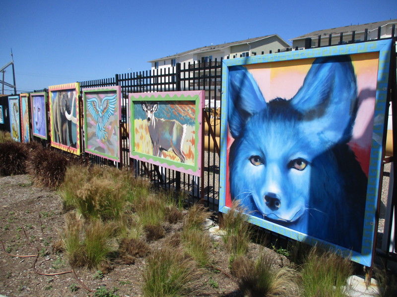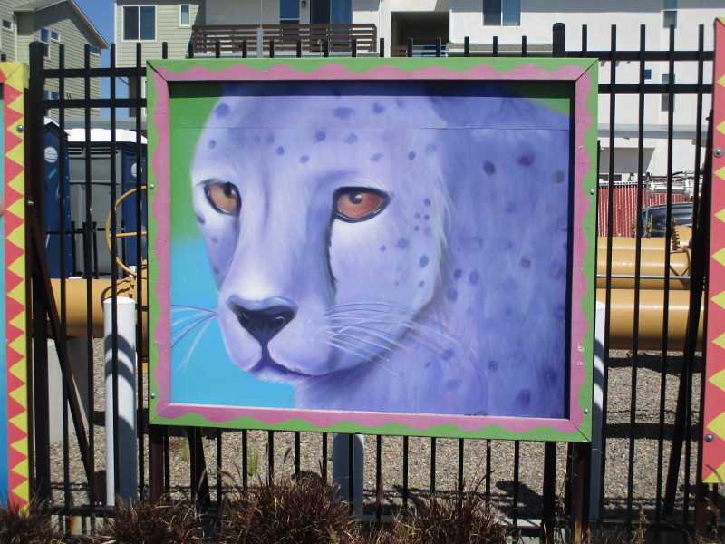 Colorful wildlife murals decorate a fence that encloses a San Diego Gas and Electric natural gas riser facility at the corner of Palm Avenue and 4th Street.