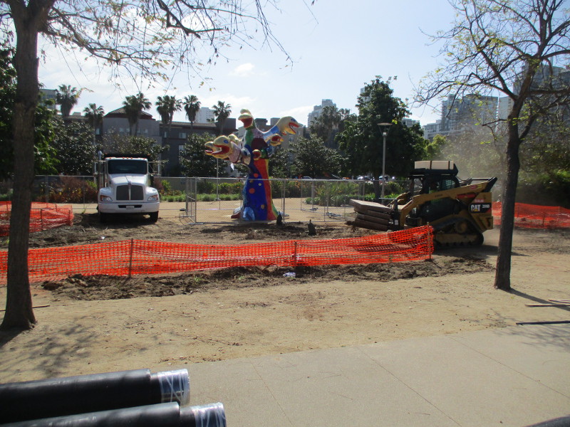 I noticed the fencing protects several trees. It’s also around world-famous artist Niki de Saint Phalle’s colorful Serpent Tree sculpture. I suspect these will not be moved.