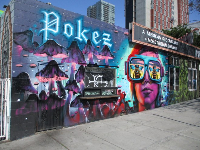 Today I spotted this cool new mural outside Pokez Mexican Restaurant during a walk through San Diego’s East Village. It’s by artist CALEB AERO (@calebaero).