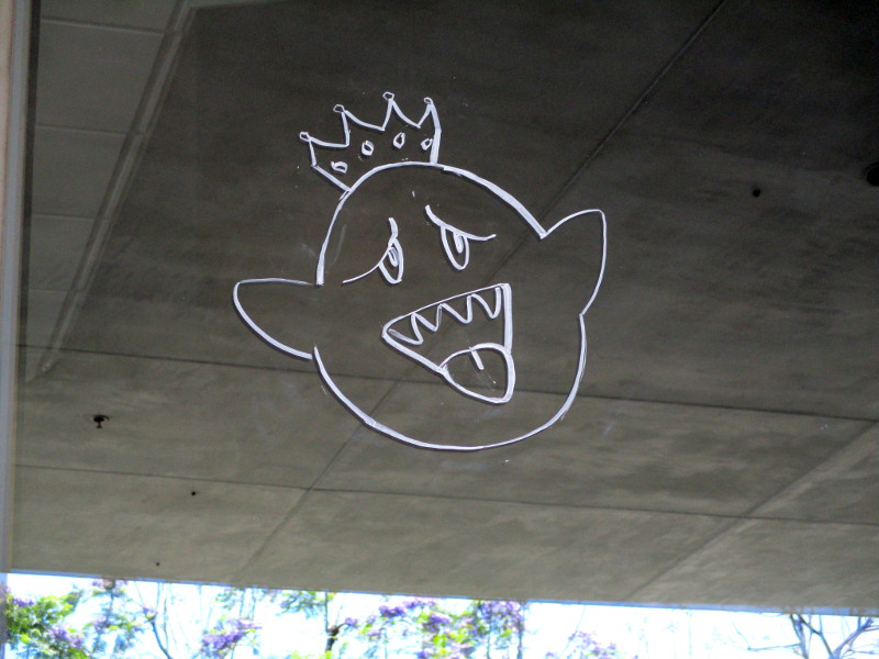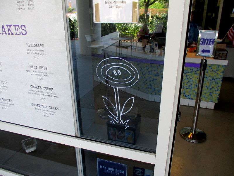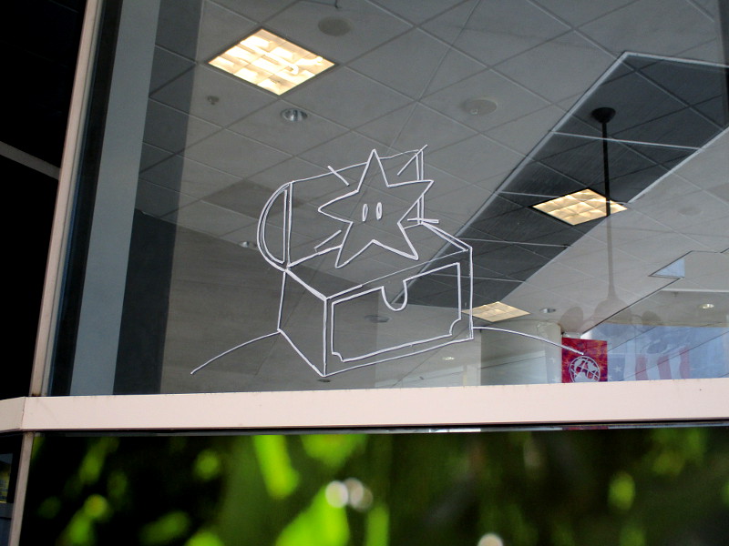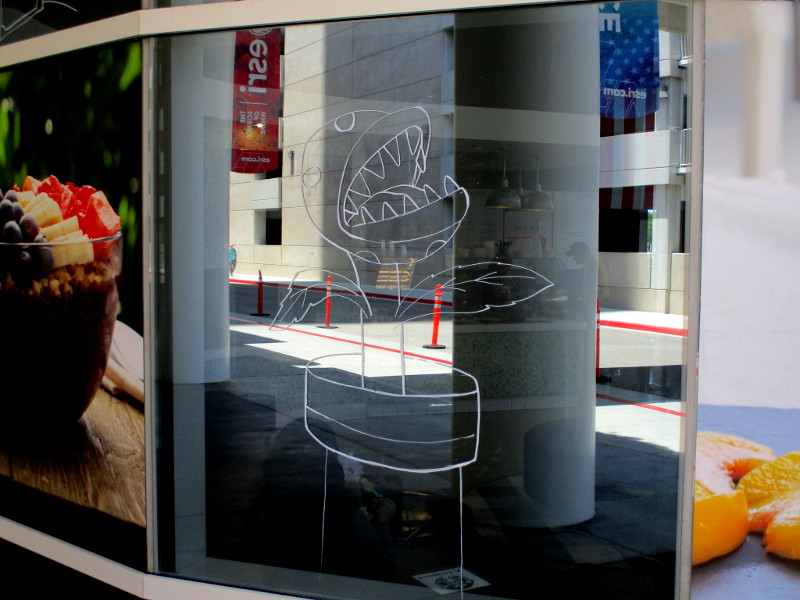 Shirish Villaseñor (@shirishtheartist) started sketching Super Mario characters on the Sweet Things Frozen Yogurt shop windows today. She’ll be adding color and detail in the days ahead. I’ll post updates as I capture new photos!