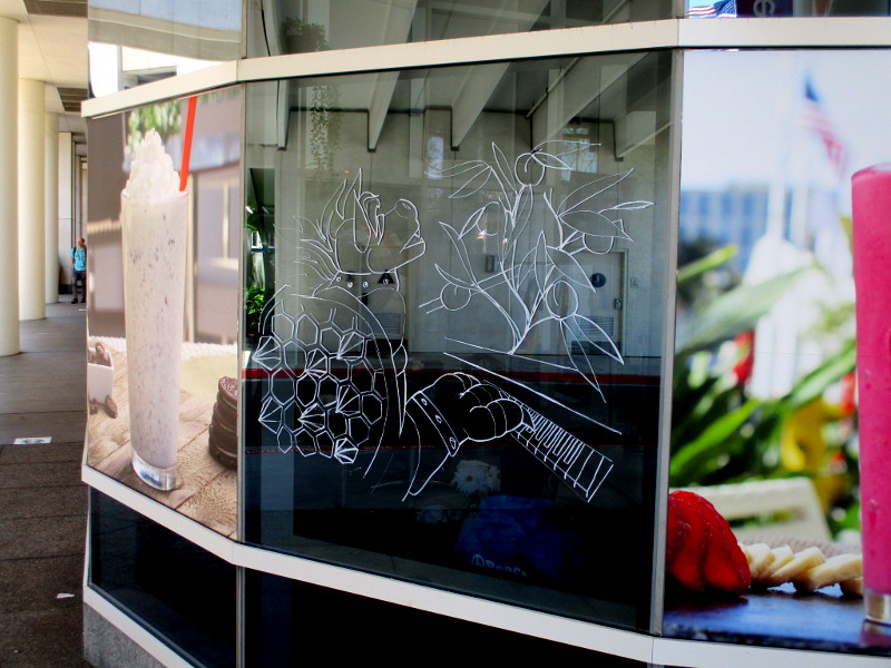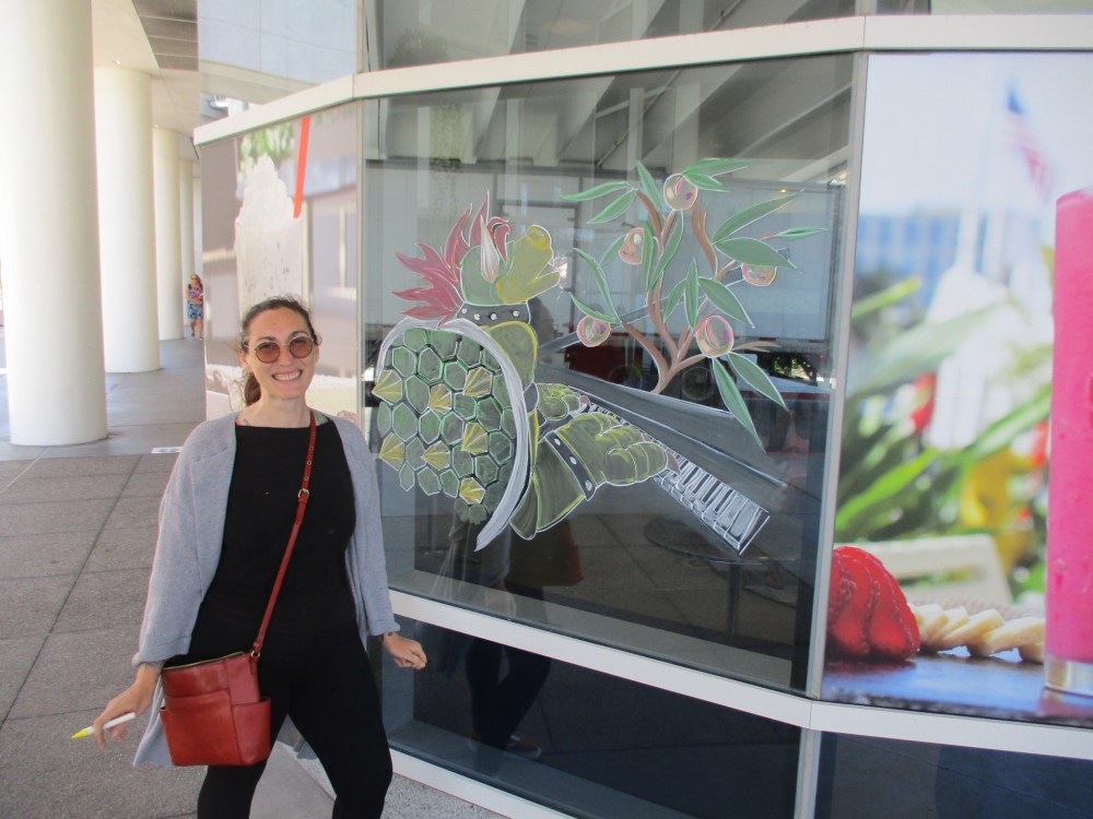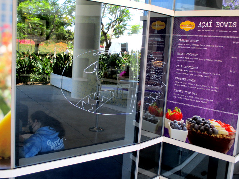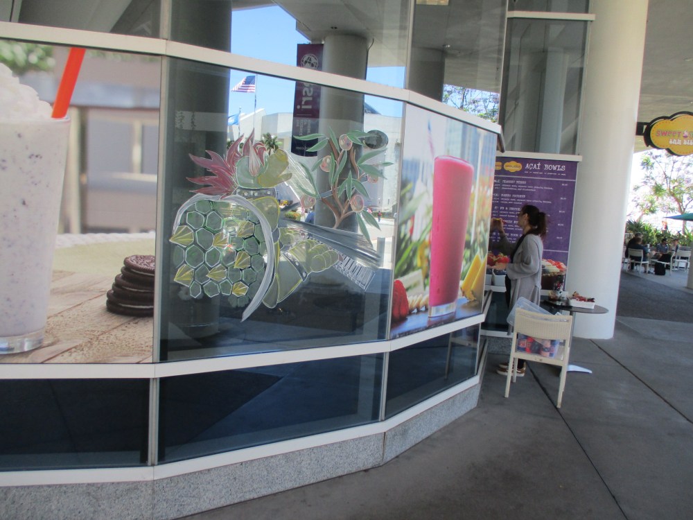 Comic-Con 2023 is almost here! Fun art has begun to appear in the windows of Sweet Things Frozen Yogurt at the Hilton San Diego Bayfront, near the San Diego Convention Center!
