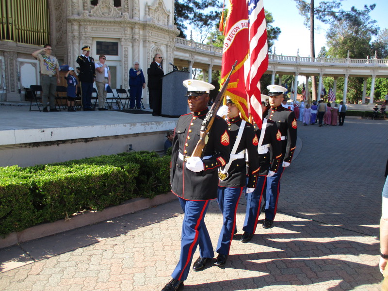 The patriotic ceremony featured a procession of color guards through the Spreckels Organ Pavilion. In addition to military color guards, participants represented dozens of schools, organizations and agencies from throughout San Diego County.