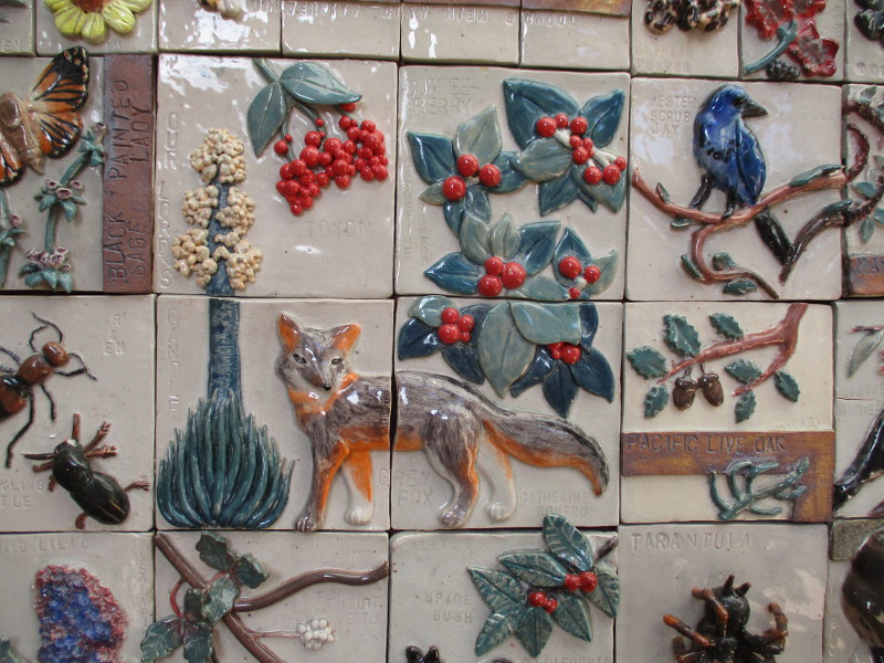 Native wildlife found in Tecolote Canyon Natural Open Space Park is illustrated by dozens of beautiful art tiles at the Nature Center.