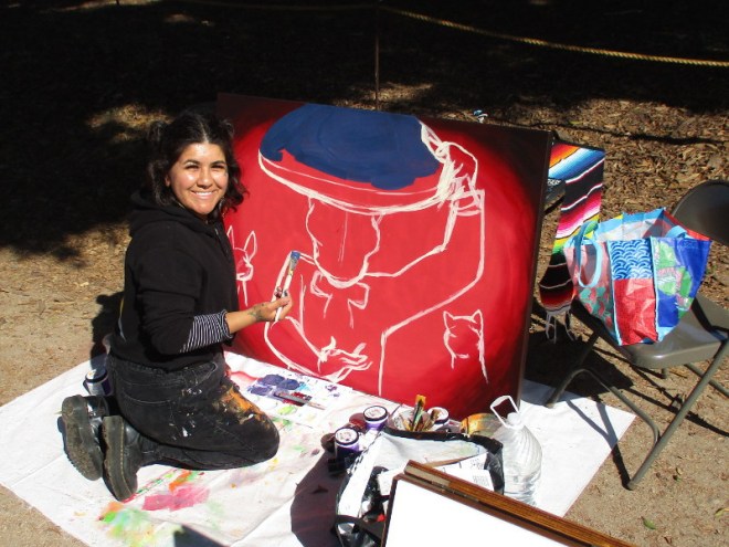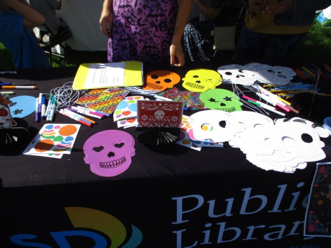 I walked through the State Park yesterday as the event was ready to open and found artists painting colorful murals, an arriving chalk artist, a sugar skull creation station and more. I watched as the big Community Altar was set up at one end of Old Town’s historic plaza.
