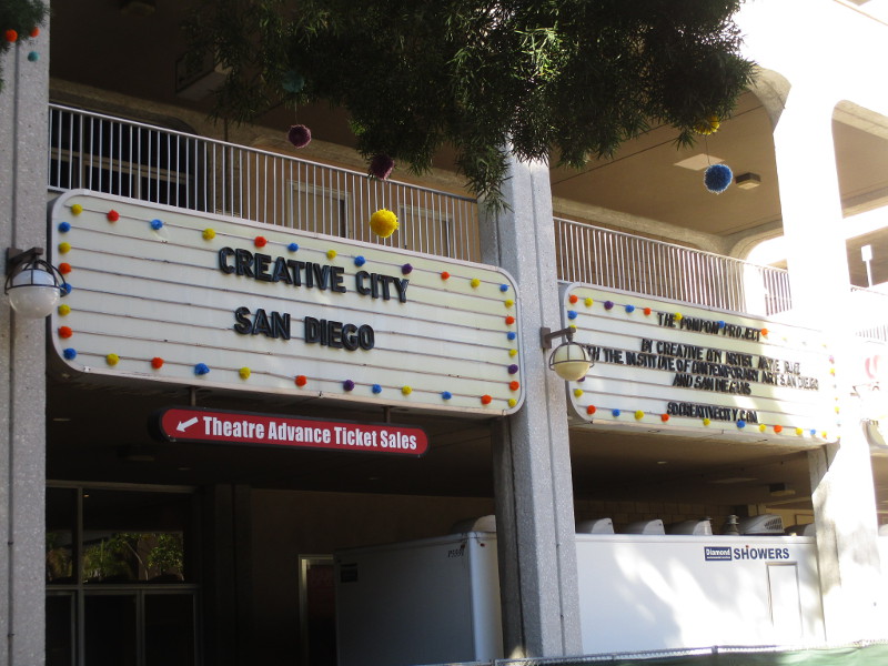 The Pompom Project has decorated the Civic Center with many bright spheres of color. Artist Katie Ruiz and the Institute of Contemporary Art San Diego produced this cool installation with the help of the people of San Diego. A goal is to bring strangers together in our community.