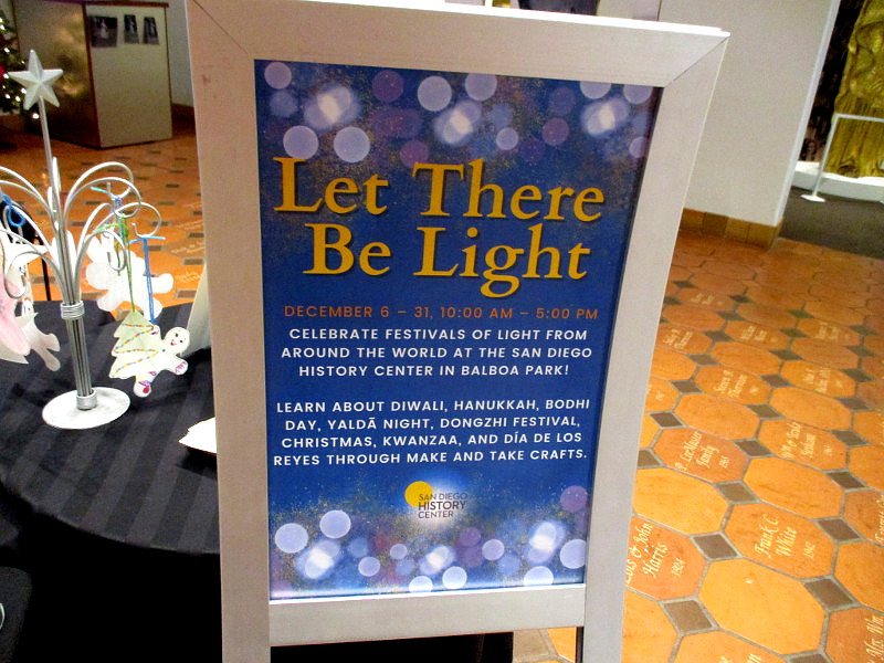 Let There Be Light will be available to the public through the end of the year. Bring all the kids. Admission to the San Diego History Center and this holiday activity is free!