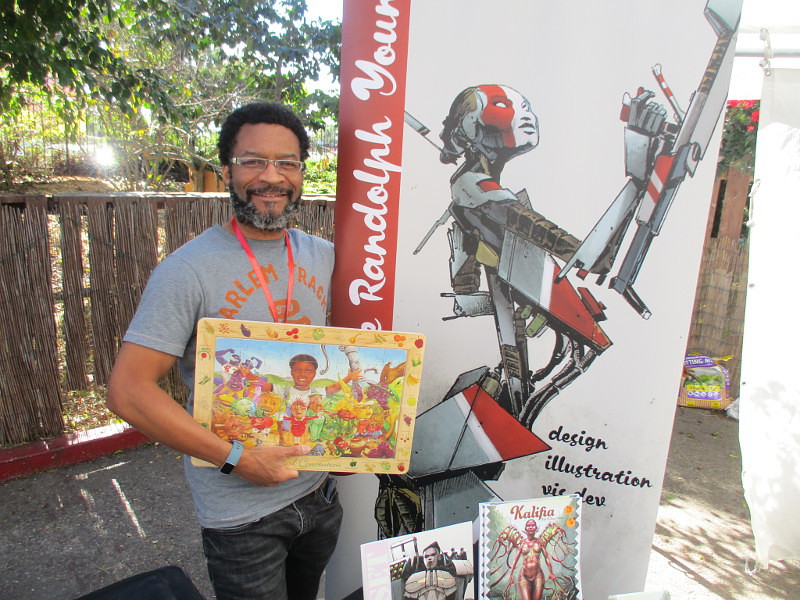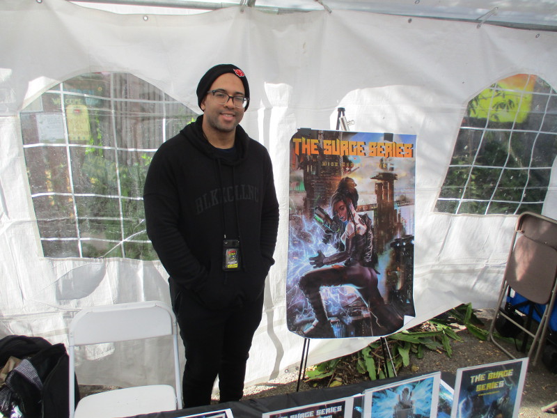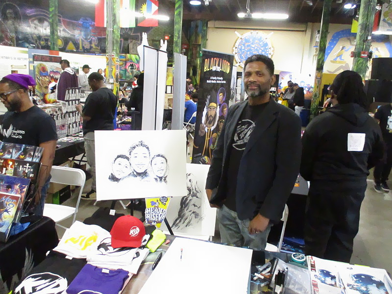 Poster for Black Comix Day at front door of the WorldBeat Center in San Diego.Marcus D. Newsome is a comic book artist, animator, illustrator and creator of Lightning Strike. Check out his website here.Eugene Randolph Young is an artist, illustrator, graphic designer and educator. He is inspired by indigenous lore, cyberpunk and Afrofuturism. He’s fascinated by artificial intelligence, too! Check out his website here.Some cool comic artwork by Eugene Randolph Young!The Surge Series is full of great Afrofuturistic cyberpunk artwork by Mike Haynes-Pitts. Check out his Instagram here.JSPR BLVK Entertainment’s table at Black Comix Day. Lil Red is a cool coloring book for kids that teaches safety! The website is http://www.jsprblvk.comJamaal A. Harley is the writer/creator of Royal Oak Comics. Check out his website here!Cool artwork displayed at the Royal Oak Comics table.A look inside the colorful WorldBeat Center during Black Comix Day 2024.Andre Owens is a creator/writer who produced Force Galaxia–Cosmic Tales of Adventure! See his Hiro Unlimited website here.Andre Owens told me that creating The Bovine League has been a lot of fun. Super-powered cows from Switzerland, The Bovine League, must go on a global quest to find the stolen Cosmic Udder and the Four Teats of Matter.KolaNut Productions has produced all sorts of cool content, including animation, that is filled with African magic, ancient folklore, and the NeoAfrican Universe. Check out their website here.Cool artwork everywhere you turn at Black Comix Day 2024!These three friends are bursting with smiles and creativity. They represent Thingamajig Studios! I love their groovy artwork. Check out their website here!UjuBeam displayed by creator Jared Lipscomb. amateur entomologist and founder of Hud Bug Comics. Super-powered insects! Check out his website here!The awesome smile of an artist creating her first comic book! I learned of her page on Facebook: mind of madness art, but could not find it! I wish I had asked more questions! (If anyone has more info, leave a comment!)Fun artwork at Black Comix Day 2024.David Phillips is the creator of Agents of S.O.U.L. As a kid, David was inspired by his Mom! Why don’t you draw some superheroes that look like you? Check out his website here!In Agents of S.O.U.L, non-super-powered heroes battle super-powered villains! Technology and science provide Black and Brown empowerment.Jason Reeves of 133art has produced many comic book titles full of Black heroes. There are comics for both kids and adults! Check out the website here!Keithan Jones works on commissioned artwork during Black Comix Day 2024.Creativity unites lovers of life and art.