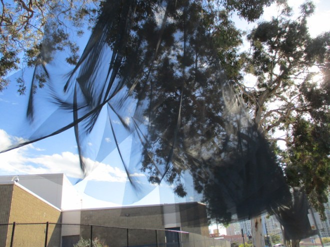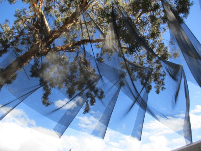 I noticed many transparent fabrics moving in the wind among the eucalyptus trees. Curling together, with clouds and blue sky behind, they can create some very beautiful effects, as you can see!