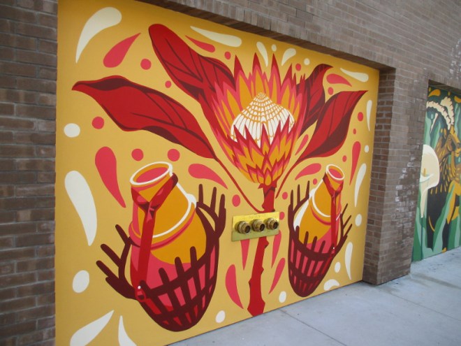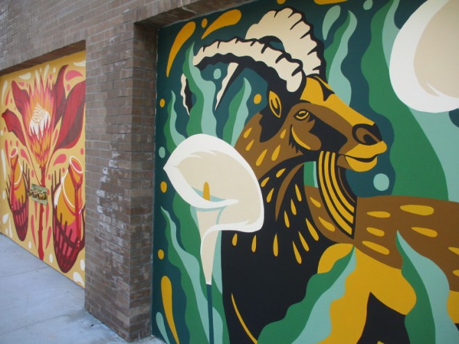 Check out these fantastic murals! The images reflect cultural diversity in the community and regional flora and fauna.