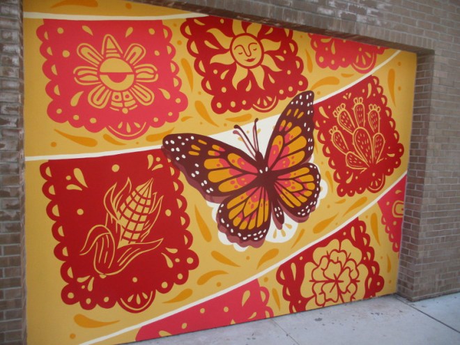 These very beautiful murals were painted a month ago in San Diego’s City Heights neighborhood. I saw the murals last weekend as I walked down Fairmount Avenue, just north of University Avenue. They decorate the Plaza del Sol affordable housing building.