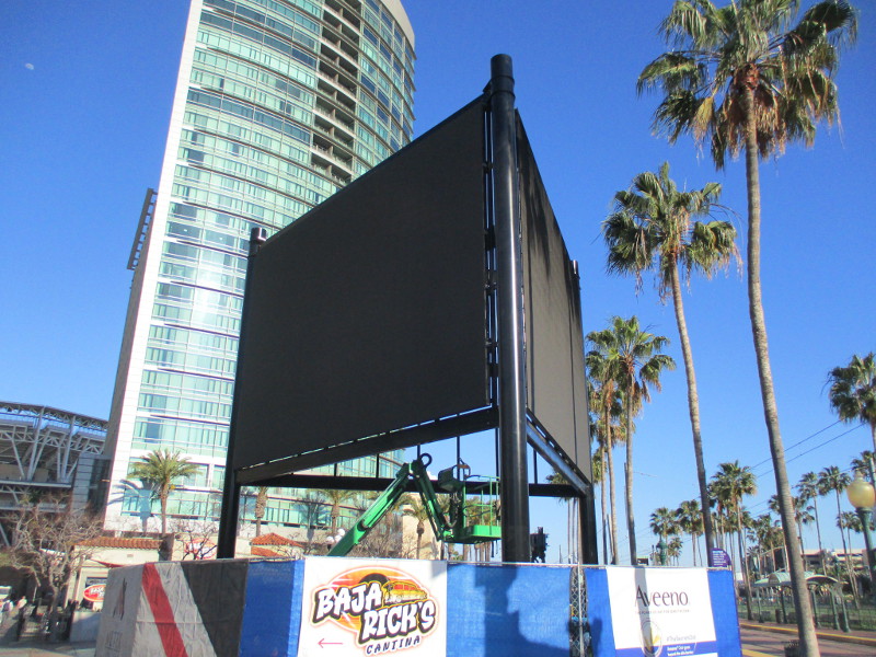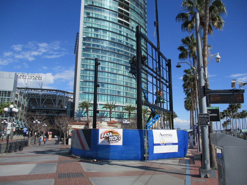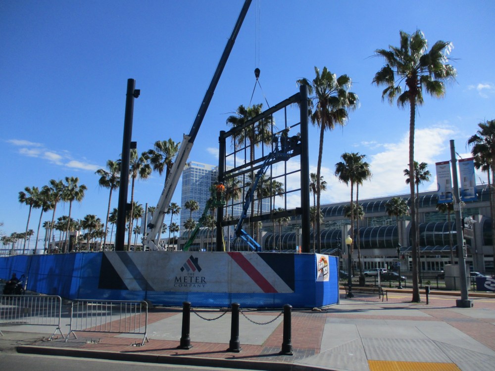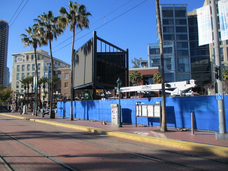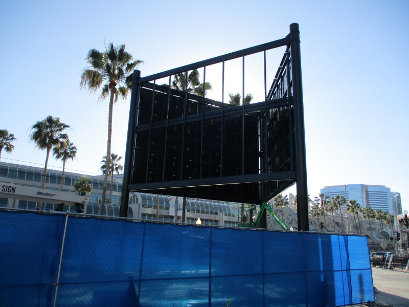 I spoke to some people who’ve been observing the construction of this steel framework. They believe this will be an LED video display. One side faces the San Diego Convention Center; the opposite side is pointed toward the iconic Gaslamp Quarter landmark sign on Fifth Avenue.