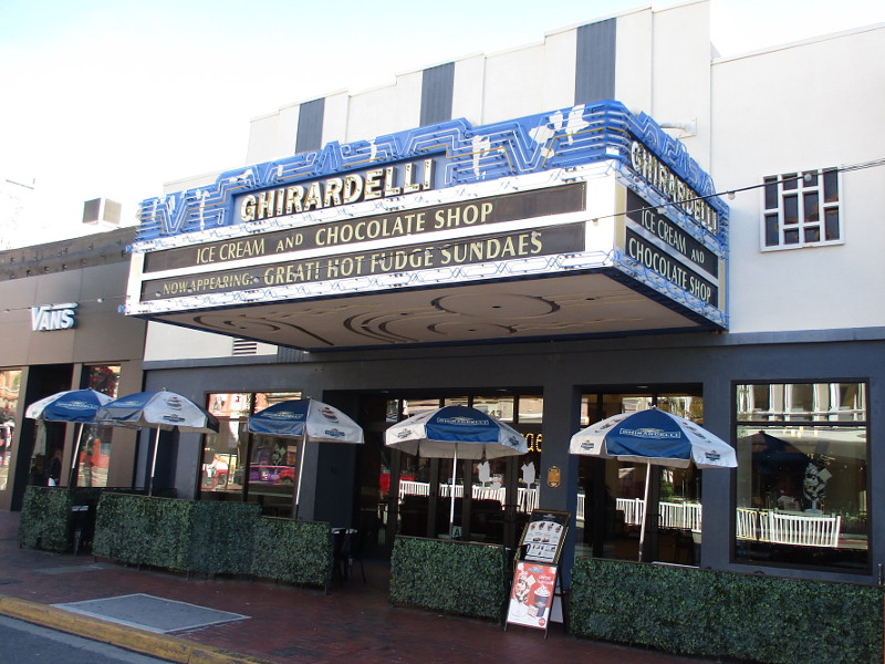 Have you ever wondered why the Ghirardelli Ice Cream & Chocolate Shop in San Diego’s historic Gaslamp Quarter has an old-fashioned theater marquee? That’s because the building, erected in 1912, was originally a movie theater!