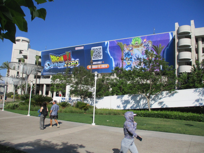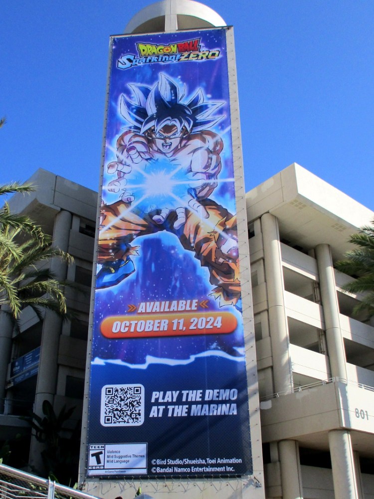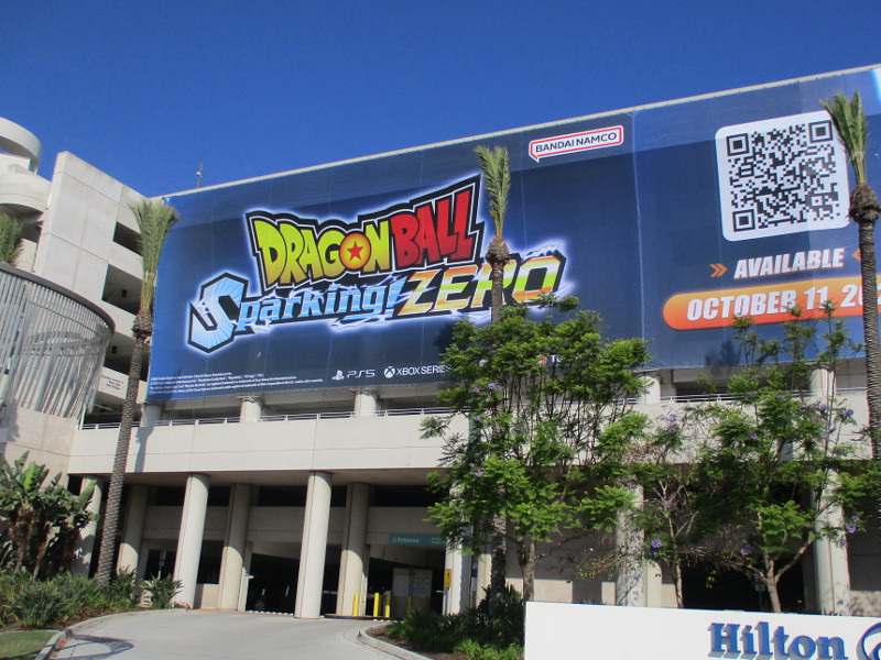 On the San Diego Convention Center side of the same parking garage there’s an even bigger banner anticipating DRAGON BALL: Sparking! ZERO. The video game is coming on October 11, 2024.