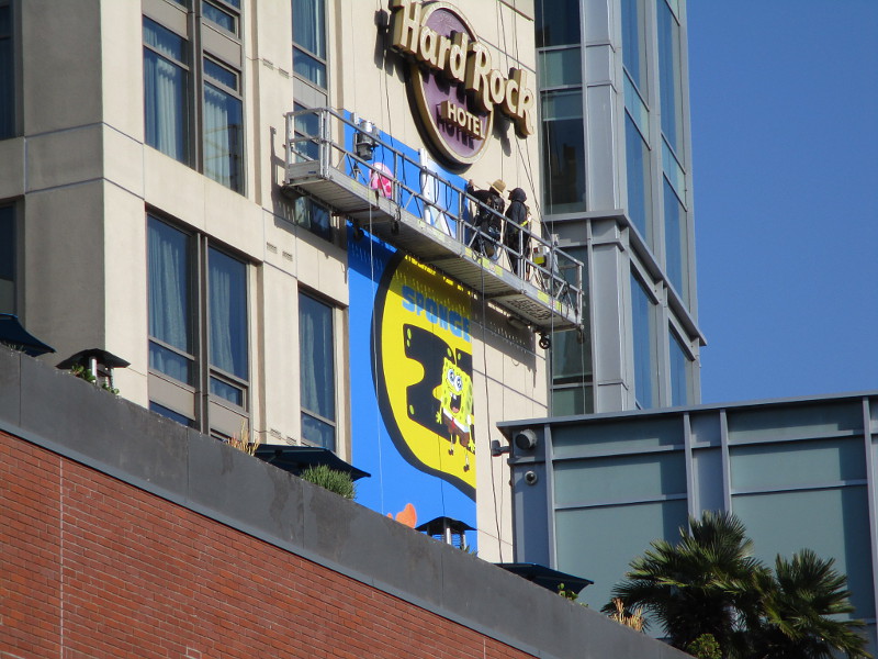 Look what’s going up on the Hard Rock Hotel! A wrap that celebrates SpongeBob’s 25th anniversary! SpongeBob Squarepants premiered on July 17, 1999.