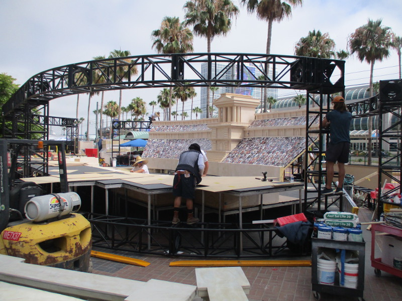 The ancient Roman chariot-racing stadium Circus Maximus is presently being built in San Diego! Workers are putting the structure together in downtown San Diego’s Gaslamp Square!