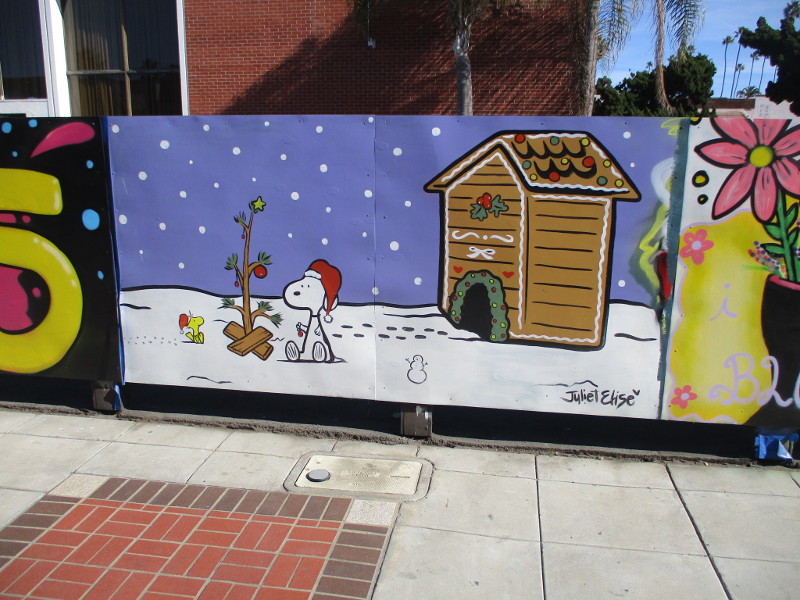 The many small murals painted on a low wall in Oceanside’s Artist Alley change from time to time. The alley is like a living thing!